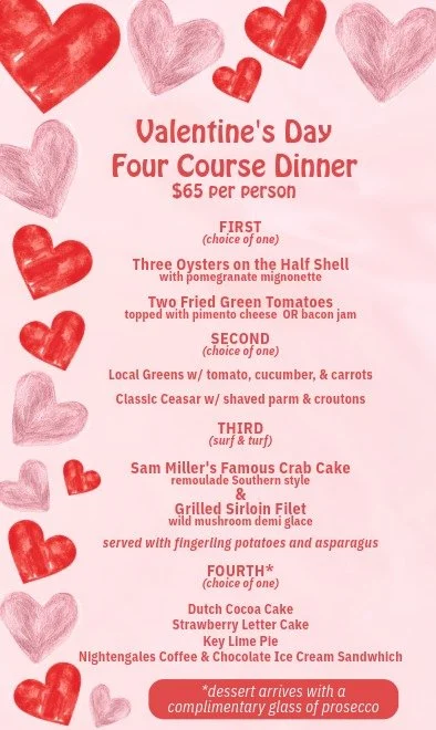 Get yourself a new ‘do or trim things up in time for your date at Highpoint Barbershop & Shave Parlor or Luminary Hair Co. Sam Miller's is a gay-owned restaurant in Shockoe Slip that often features special menus like the one below. Looking for a little jump-scare to get your valentine in your arms? Check out RED VEIN Escape in Ashland. Or spoil your love with a meal and overnight at Henry Clay Inn.
