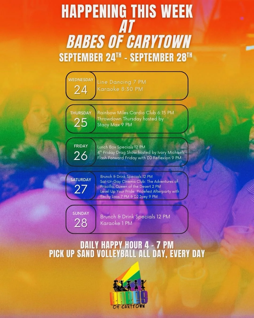 September 24th - September 28th at Babes. Happy hour daily from 4 - 7 PM.