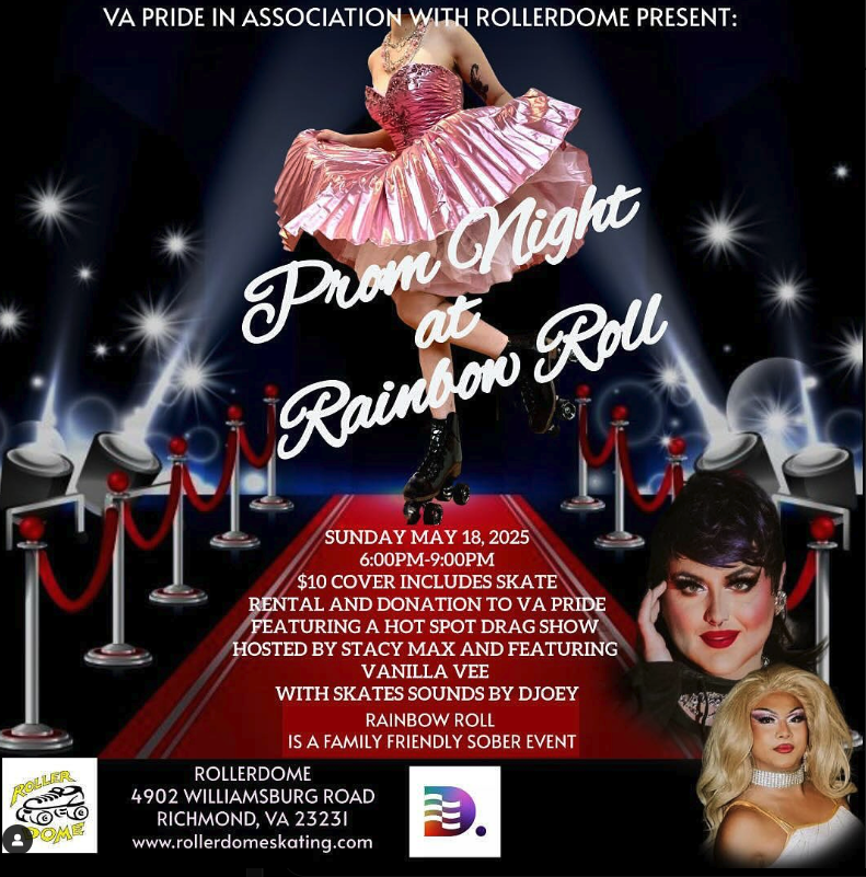 All Ages | Alcohol-Free | $10 Admission (includes skate rental + donation to VA Pride!)