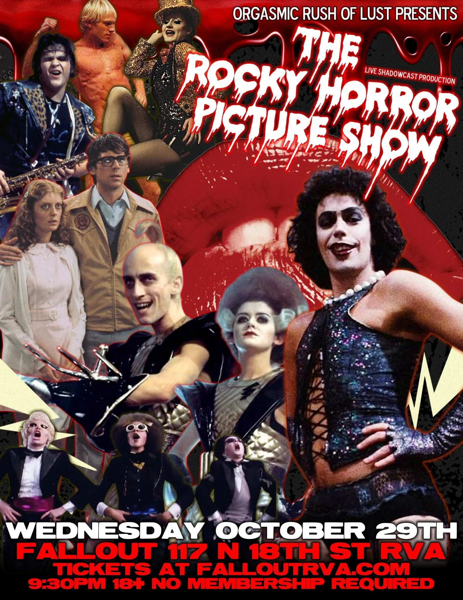 Join us at Fallout for a live shadow cast of The Rocky Horror Picture Show! Tickets are $20 and your prop bag is included. Show starts at 10PM!